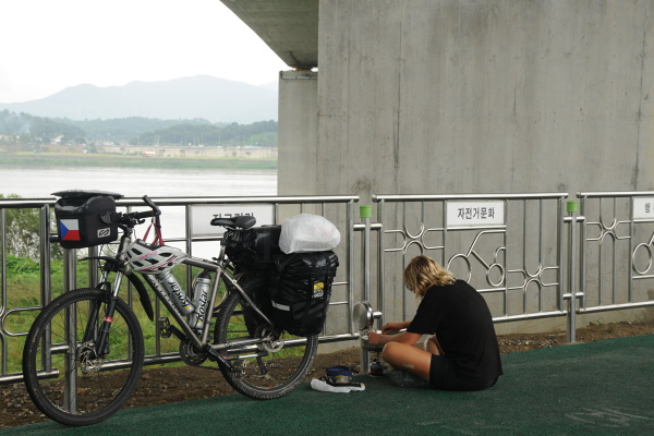 Vaříme si oběd na cyklostezce kousek před Soulem